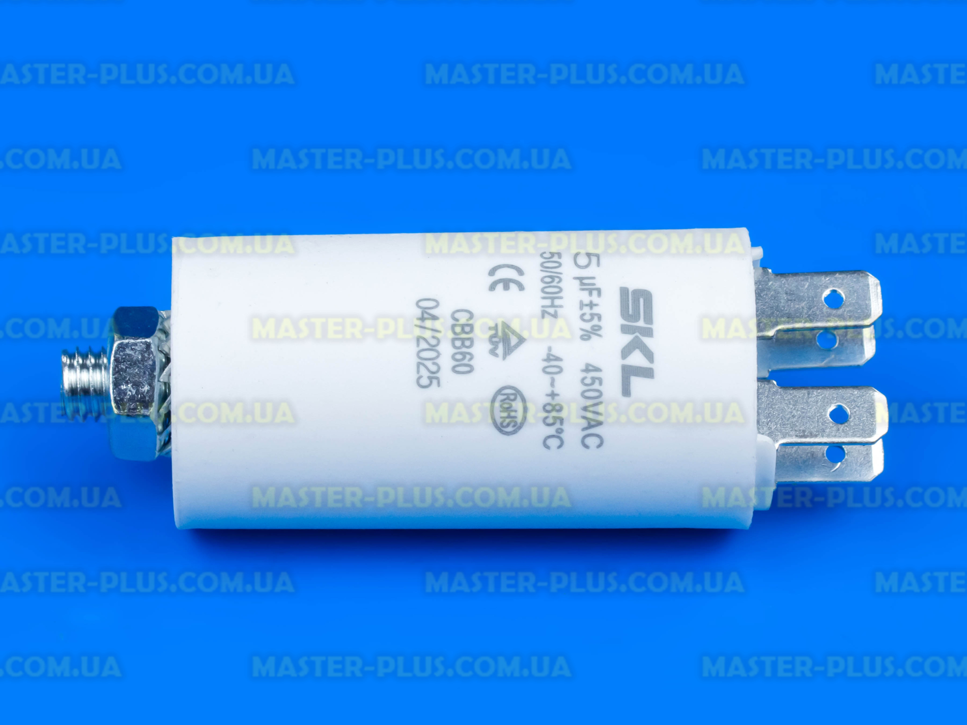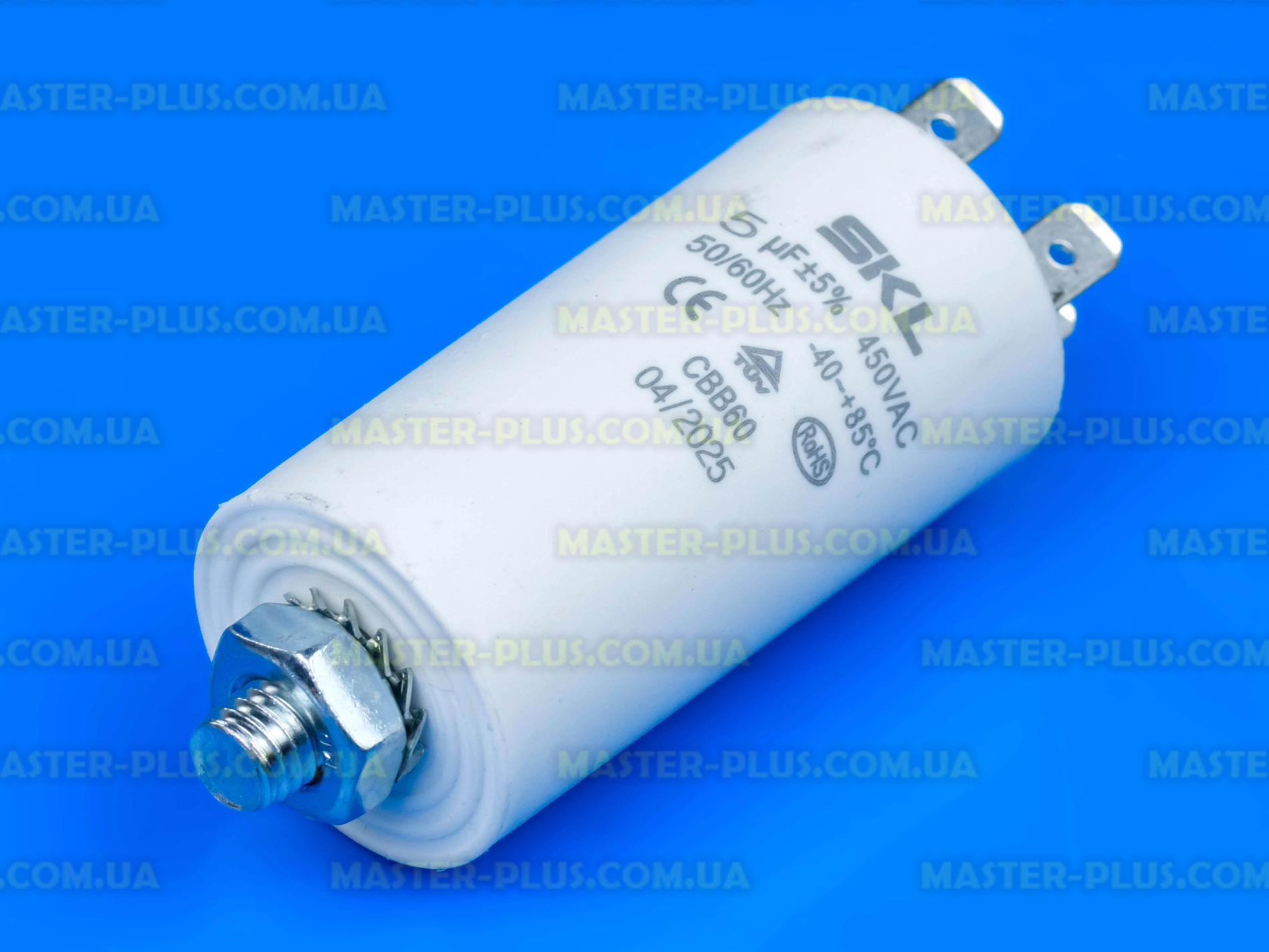 Конденсатор 5 Mf 450V SKL. Одна з важливих та невід'ємних деталей для злагодженої роботи холодильного обладнання. Це пластиковий циліндр, який має дві металеві пластини, що дійсно посилює процес теплообміну.